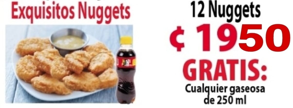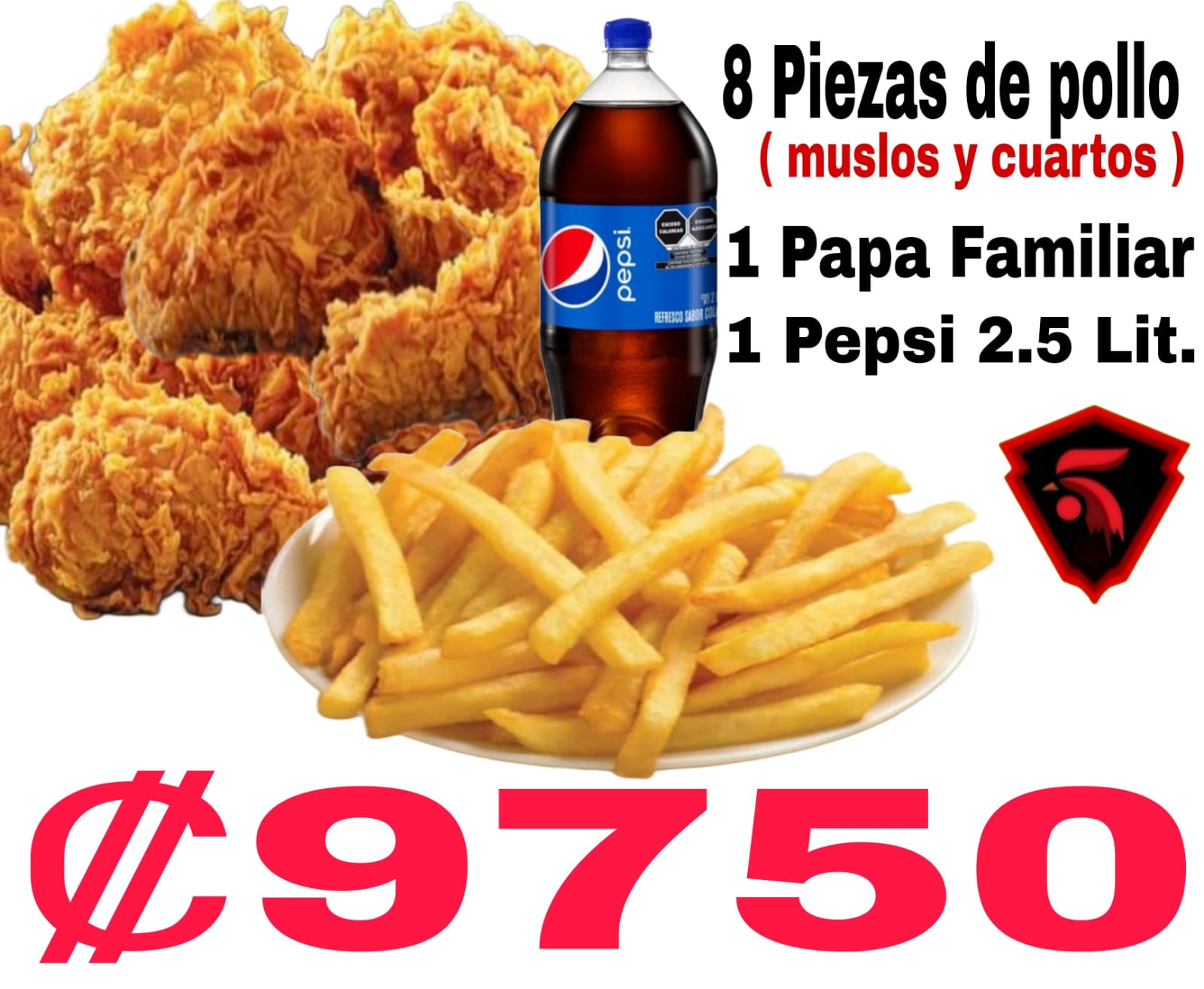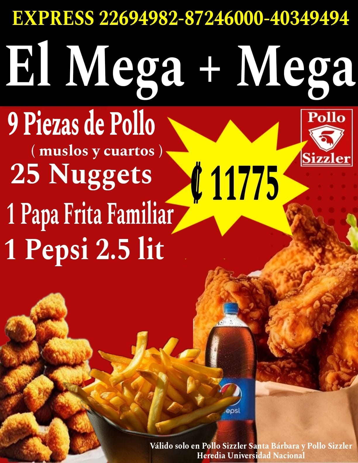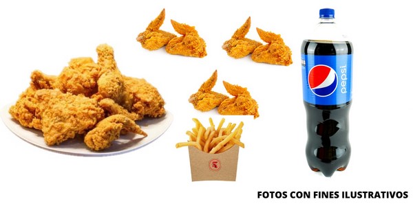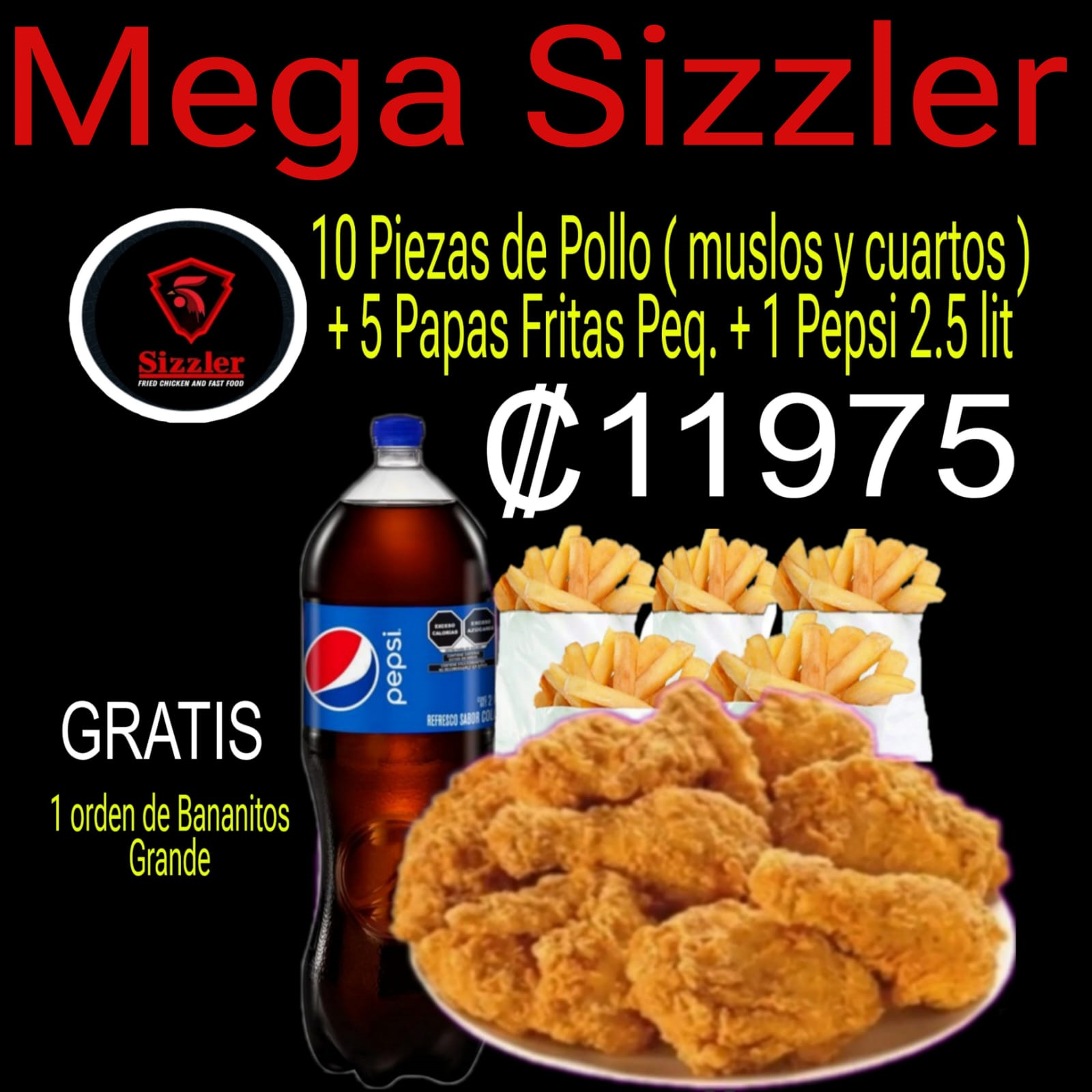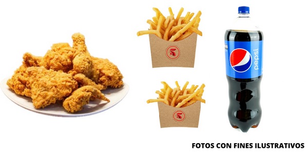 10 deliciosas piezas de pollo MC 5 papas fritas peq 1 pepsi 2.5l Por su compra reciba gratis una orden de bananito Grande
