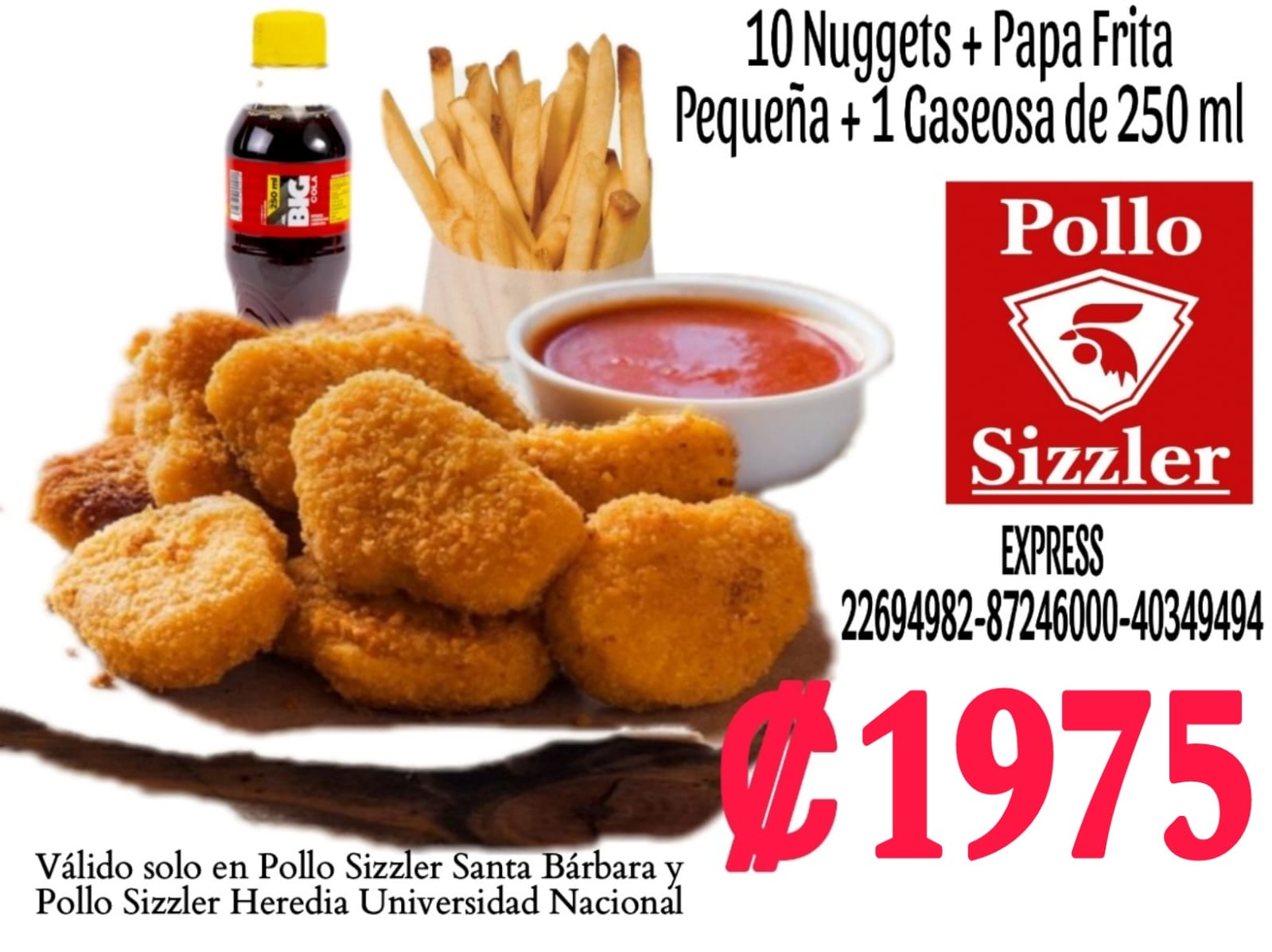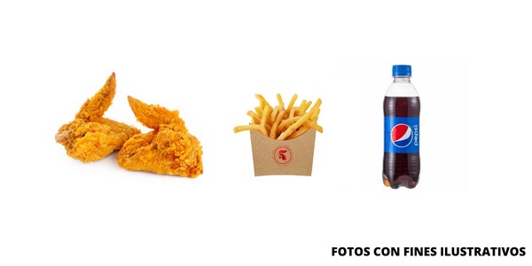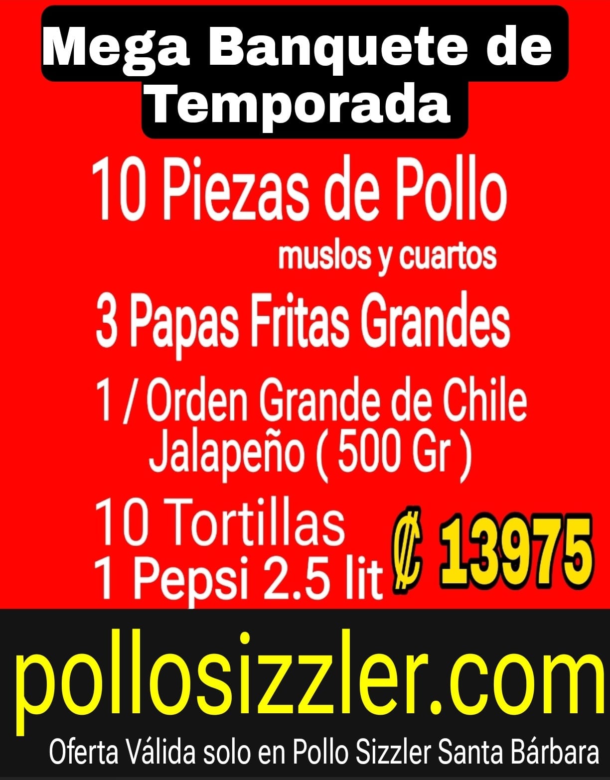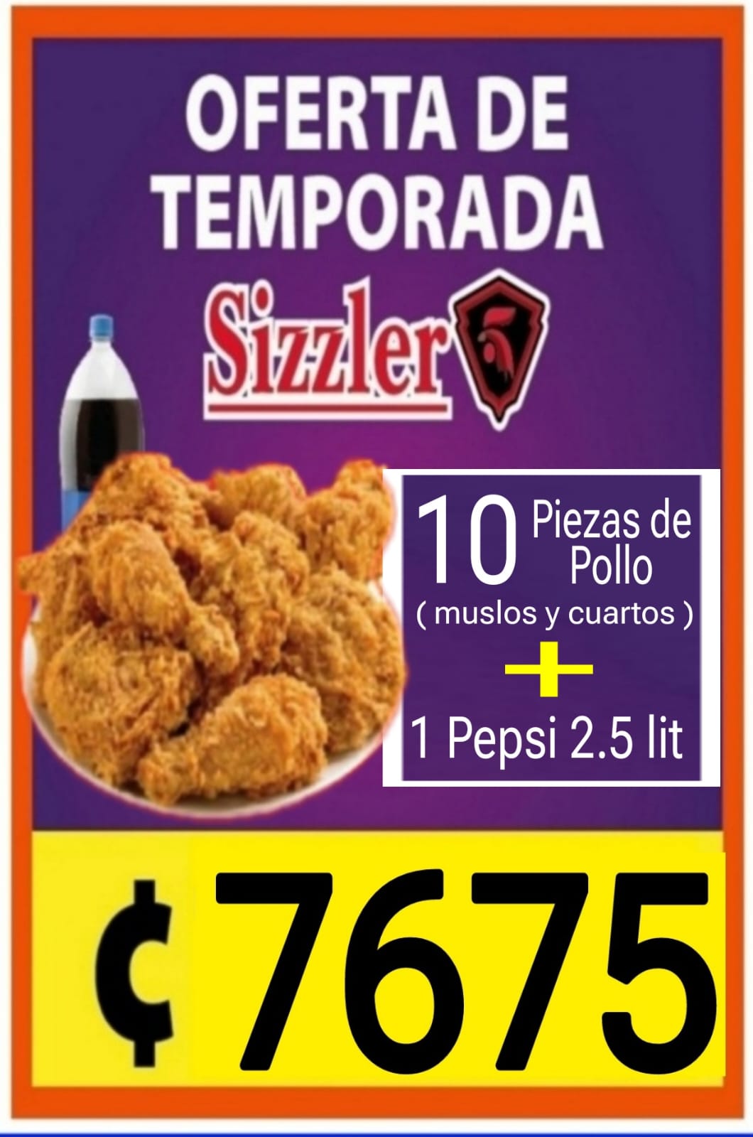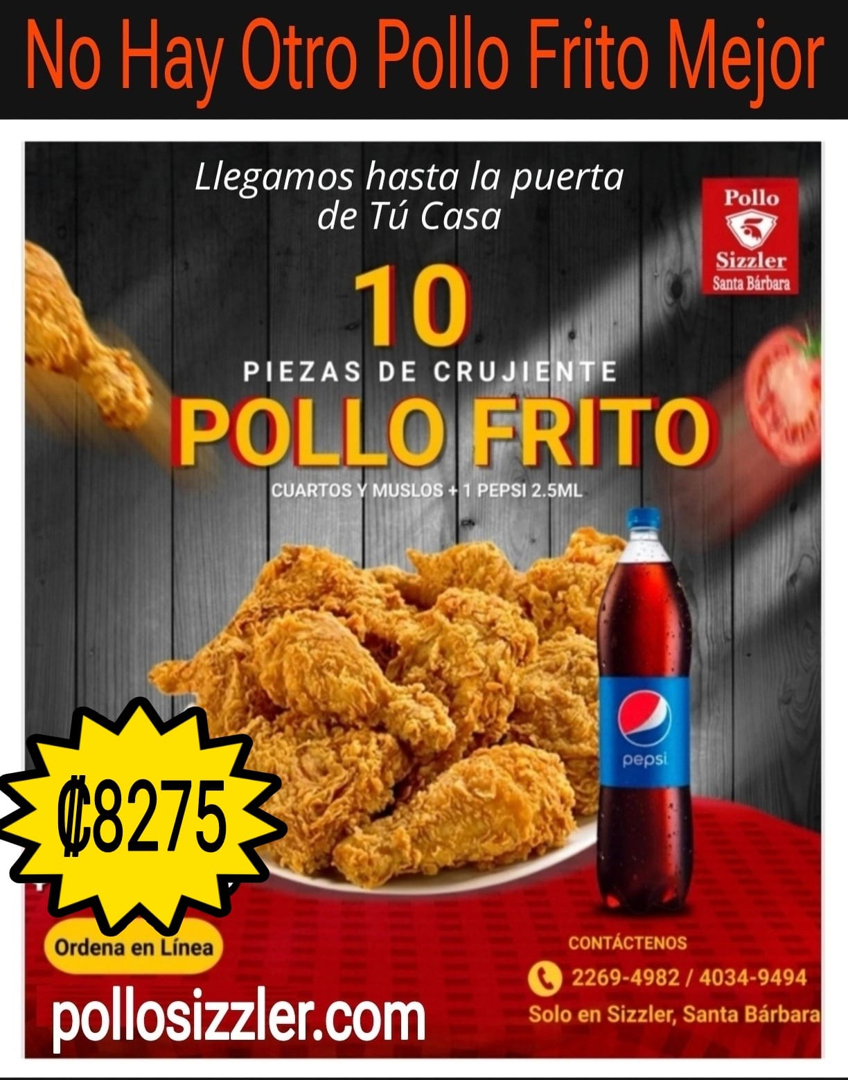 10 deliciosas piezas de pollo MC 5 papas fritas peq 1 pepsi 2.5l Por su compra reciba gratis una orden de bananito Grande